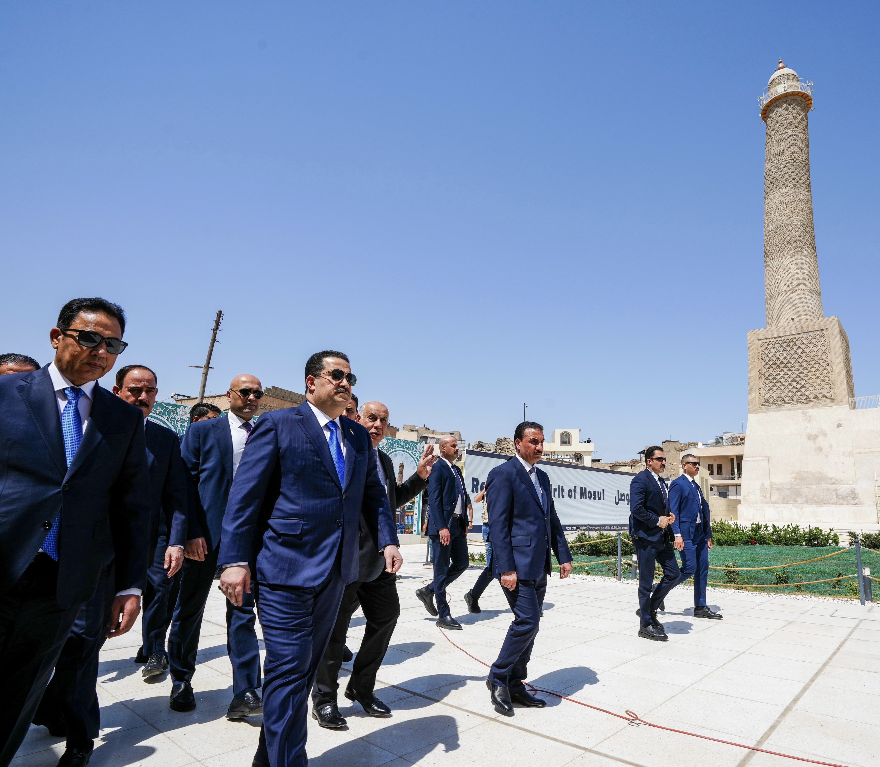 رئيس الوزراء يفتتح جامع النوري ومئذنة الحدباء وسط الموصل